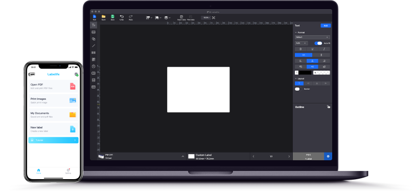 Customize and print labels seamlessly from any PC or mobile device — Windows, Mac, Linux, iOS, and Android.